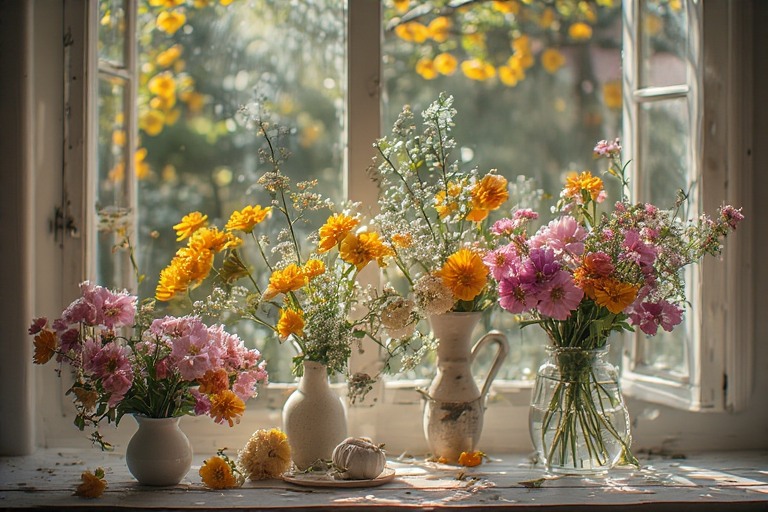 Coba letakkan tiga gelas berisi bunga berbeda di atas meja makan — satu dengan bunga yang tinggi, satu dengan yang pendek, satu dengan tangkai yang lebih banyak tapi lebih rapat. Komposisi yang tidak simetris itu menciptakan tampilan yang jauh lebih hidup dan lebih menarik dari satu vas besar yang formal. Dan ketika cahaya musim semi yang lembut mengenai gelas-gelas itu dari jendela yang terbuka, efek visual yang tercipta adalah sesuatu yang sangat sulit direplikasi dengan cara apapun selain dengan cara yang paling sederhana ini.